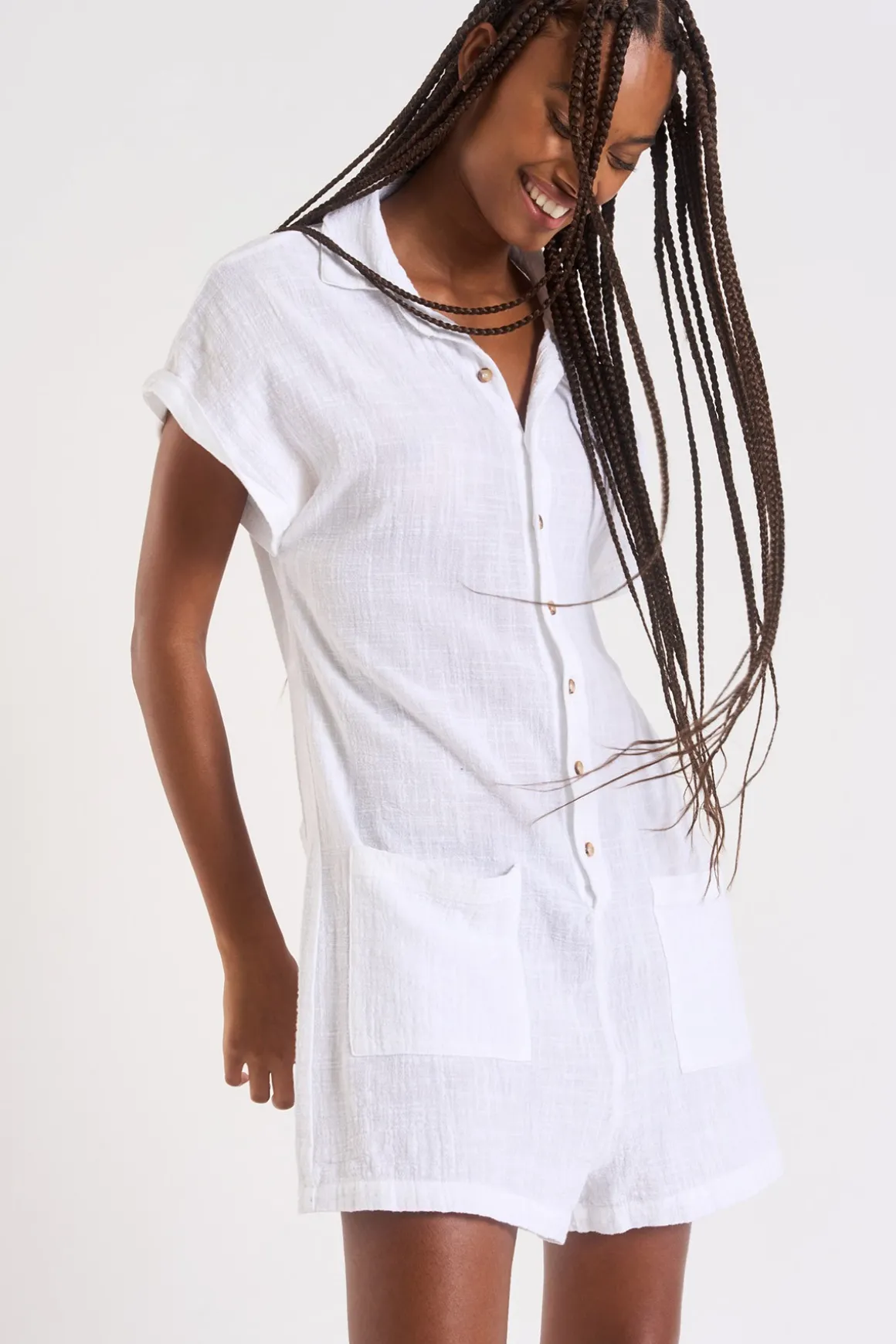 | Details | • Overhemdjurk • Knopen op de voorkant • Overhemdkraag • Korte mouwen • Effen • Zakken aan de voorkant, onderkant van de jurk • 100% katoen |