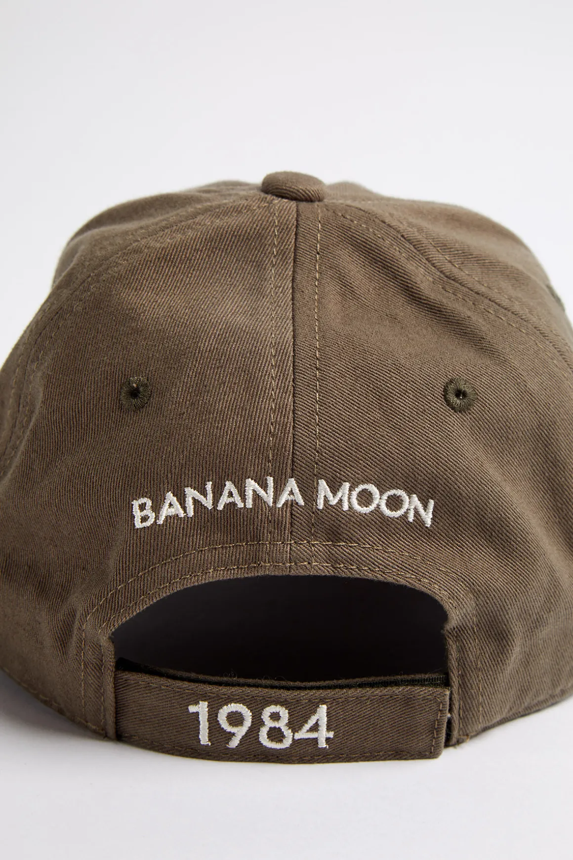 | Details | • Casquette kaki • Broderie ton sur ton “Banana Moon” • Logo devant et derrière • Fermeture arrière par velcro • Renfort intérieur ton sur ton • Taille unique |